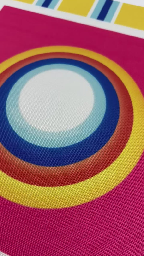 Individuales en tela antifluidos de la Artista Patricia Quevedo con su obra titulada "Añoranza".